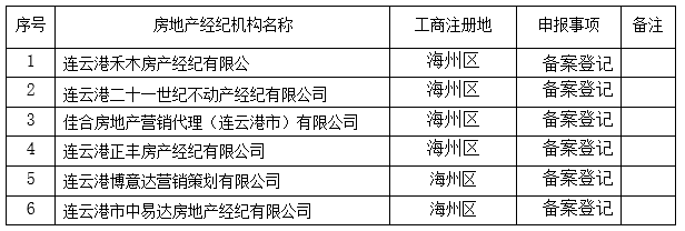 连云港市房地产经纪机构备案登记审核结果公告(2018年第7批)
