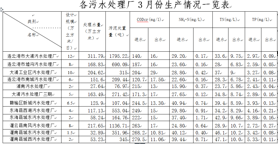 城市污水处理设施2026年3月份运行情况简报